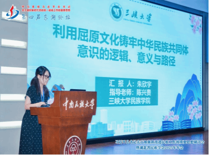 在论坛上,朱欣宇提交《利用屈原文化铸牢中华民族共同体意识的逻辑、意义与路径》的学术论文,并在交流环节发言。曹大明院长担任研讨交流环节的主要评议人。