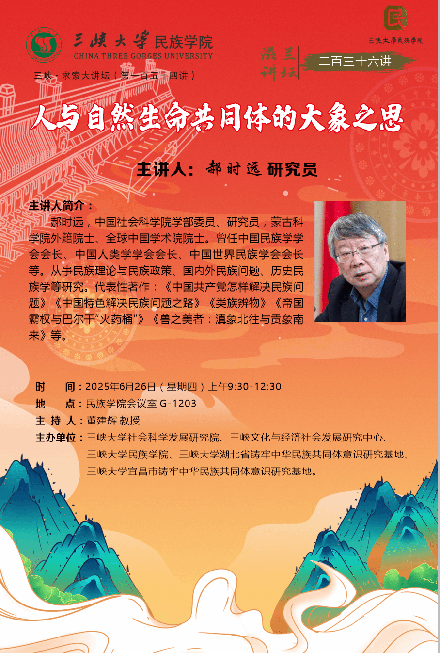 三峡•求索大讲坛 第一百五十四讲 滋兰讲坛 二百三十六讲 人与自然生命共同体的大象之思
