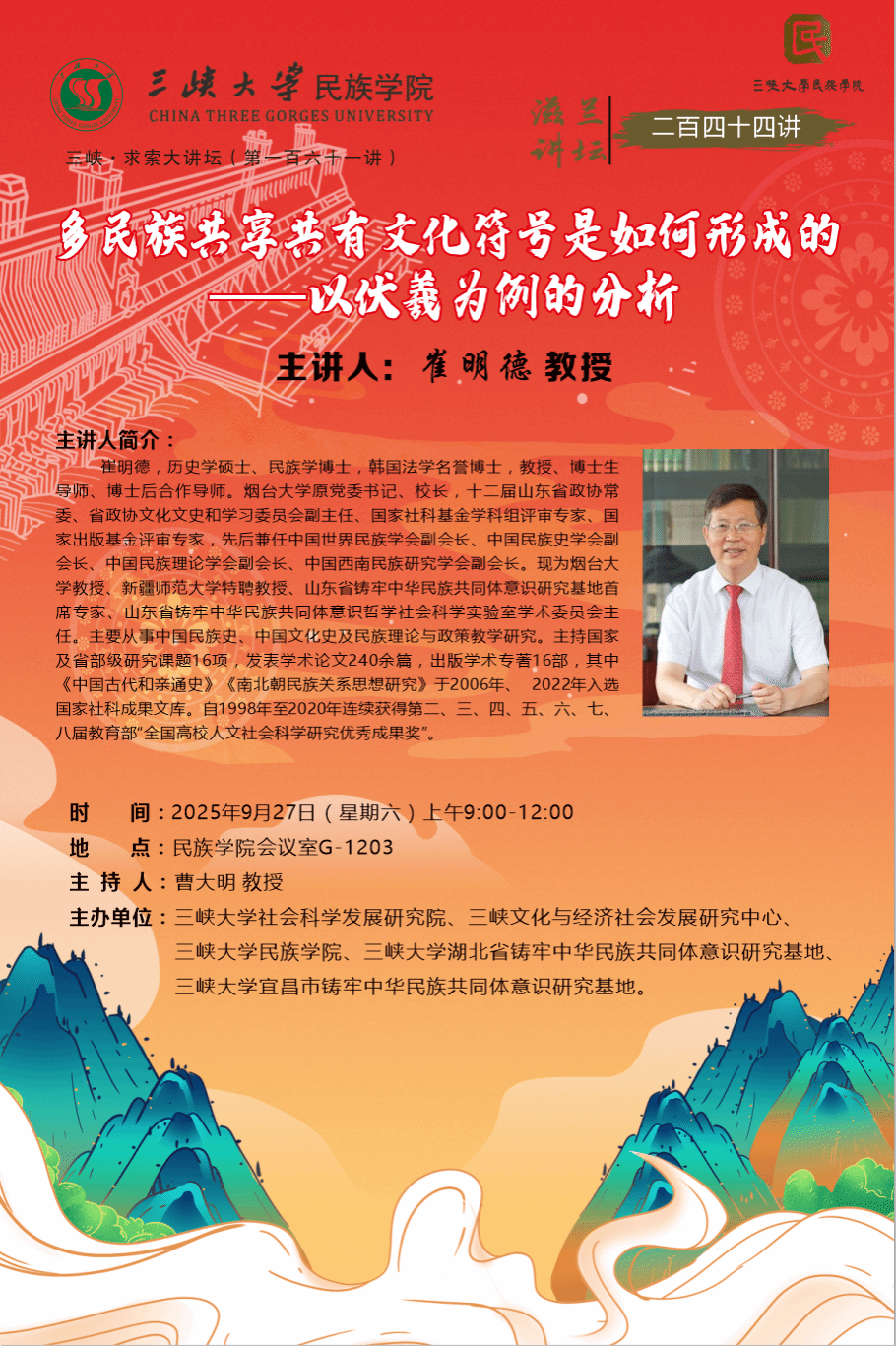 上一条:滋兰讲坛 两百四十五讲 川西南地区的屯堡家神祭祀习俗——以四川冕宁为例 下一条:三峡•求索大讲坛 第一百五十八讲 滋兰讲坛 二百四十三讲 孙中山民族主义思想与南京国民政府初期旅居内地藏族人士的中华民族观念